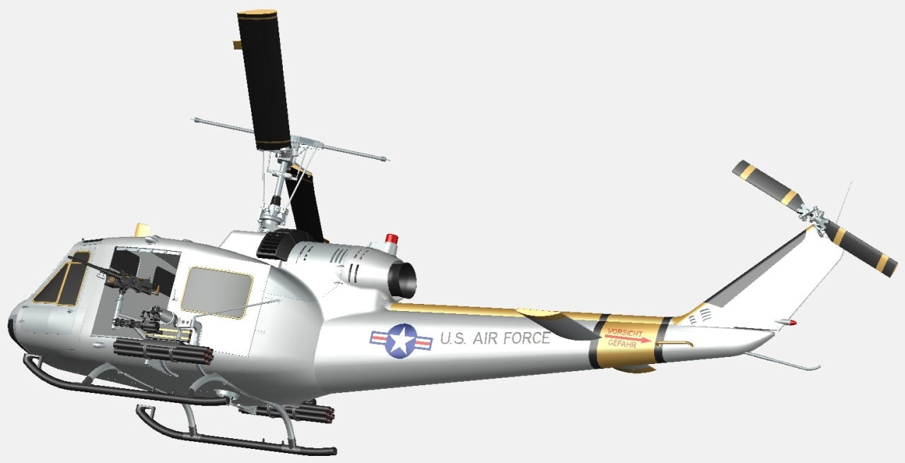 Есть возможность управления геометрией модели: переводить лопасти вертолета из положения «Стоянка» в положение «Полет», открывать и закрывать двери десантного отделения.